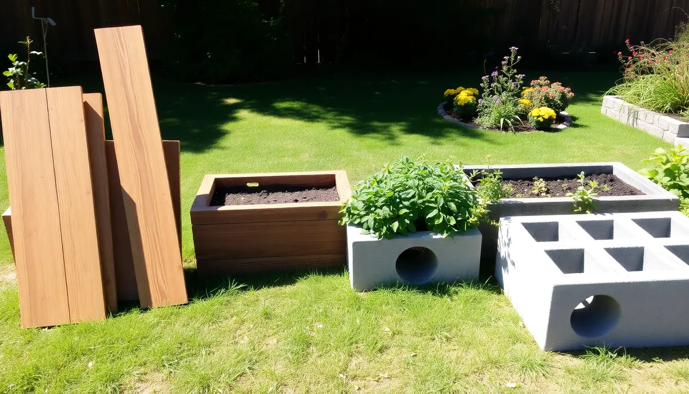 Bricks provide a sturdy option, creating a classic look while allowing adequate drainage. Stone, though heavier, enhances stability and offers a timeless design. Concrete blocks allow for easy stacking, giving flexibility in height and shape. Metal, such as corrugated steel, resists rust and can create modern, sleek designs. Edging materials, like recycled plastic, offer a lightweight alternative while remaining budget-friendly. Select materials based on aesthetic preference, purpose, and environmental impact for a tailored gardening experience.